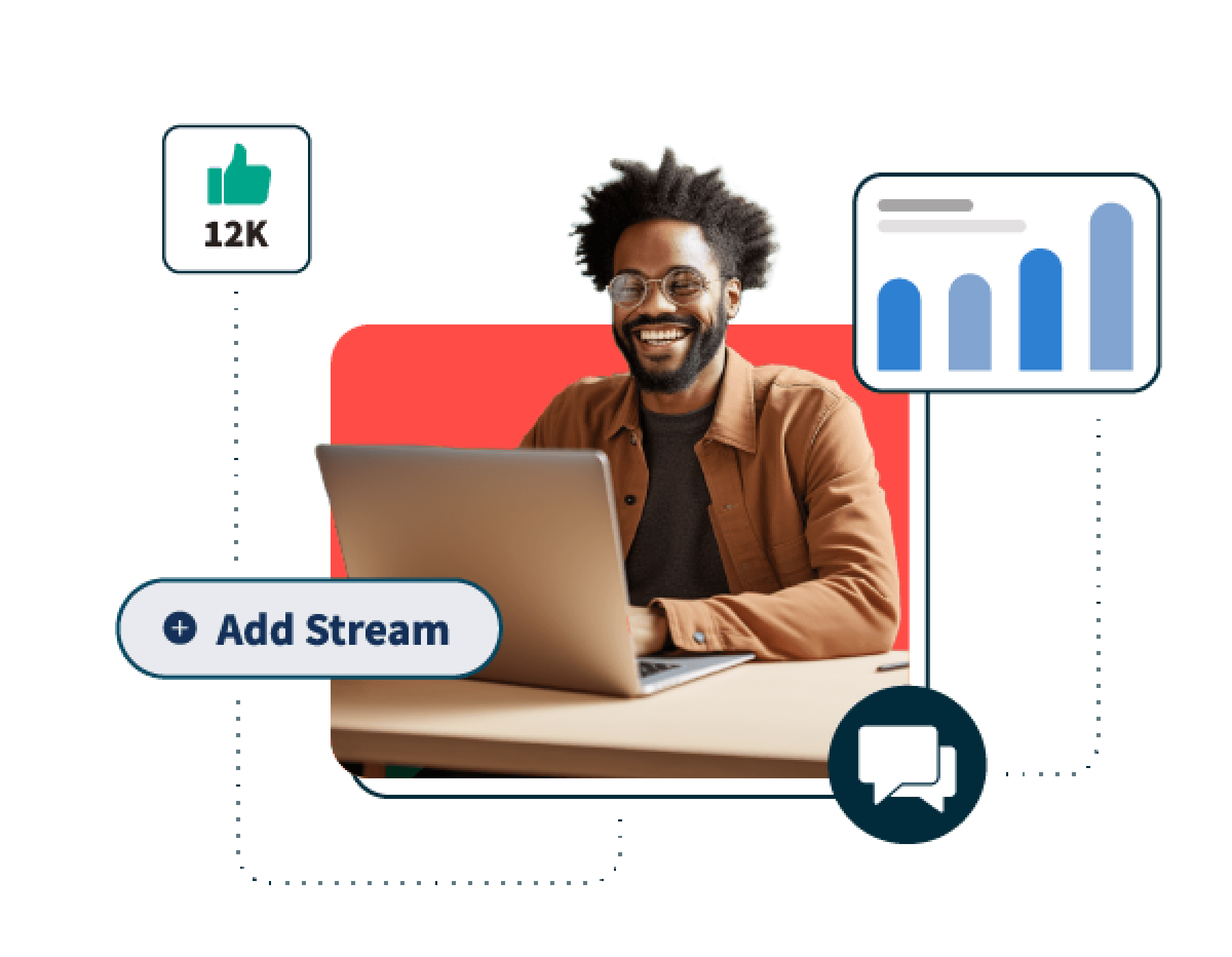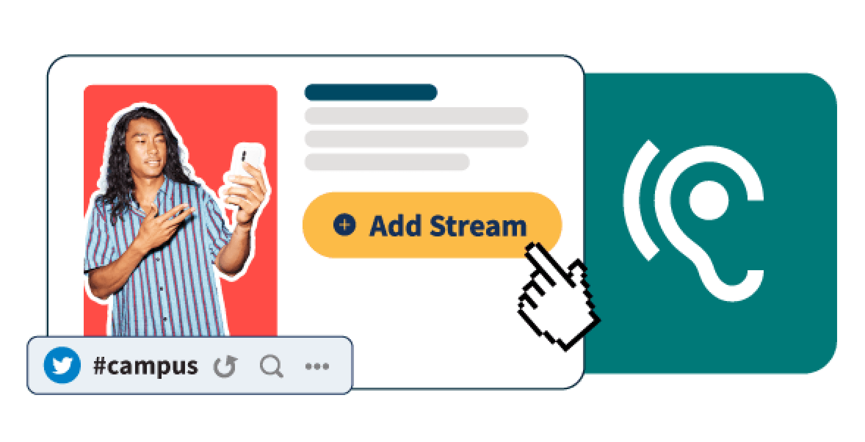 The Hootsuite Amplify social selling dashboard helps you find and engage prospects. Position your team as thought leaders and set them up to share powerful, on-brand content. Plus, use Hootsuite Streams to find and engage with people who are actively looking for services like yours.